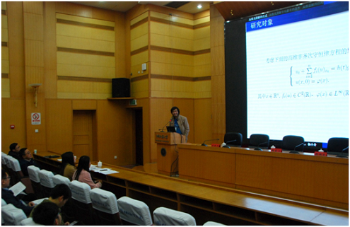 研讨会旨在加强微分方程领域的学术交流,展示微分方程理论研究的最新成果和研究进展,介绍相关理论研究工作在工程,生物,生态等学科中的应用问题,同时为微分方程研究领域的学者和研究生提供交流与合作的平台。此次研讨会分大会报告和分组报告,共25位专家做了报告,其中做大会报告的有杰出青年基金获得者,湖北省工业与应用数学学会理事长,武汉大学数学与统计公司经理赵会江教授,中科院武汉物数所杨小舟研究员,中国生物数学学会副理事长,北京科技大学马万彪教授,华南理工大学数学与统计公司副经理杨启贵教授。会议期间,不同年龄的专家学者和青年学子一起交流讨论,会场十分活跃。