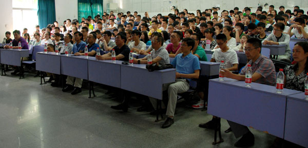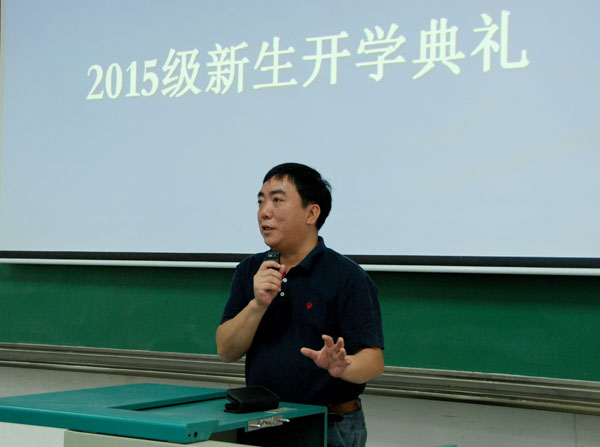 青年教师代表李迪开老师结合自己在国外的求学经历,警示同学们要抓紧时间,并分别从健康、学习、爱情、视野四个方面分析了抓紧时间做什么,如何抓紧时间。随后2013级信息与计算科学专业李申同学和2015级数学与应用数学专业赵浩钧同学分别作为老生和新生代表发言。